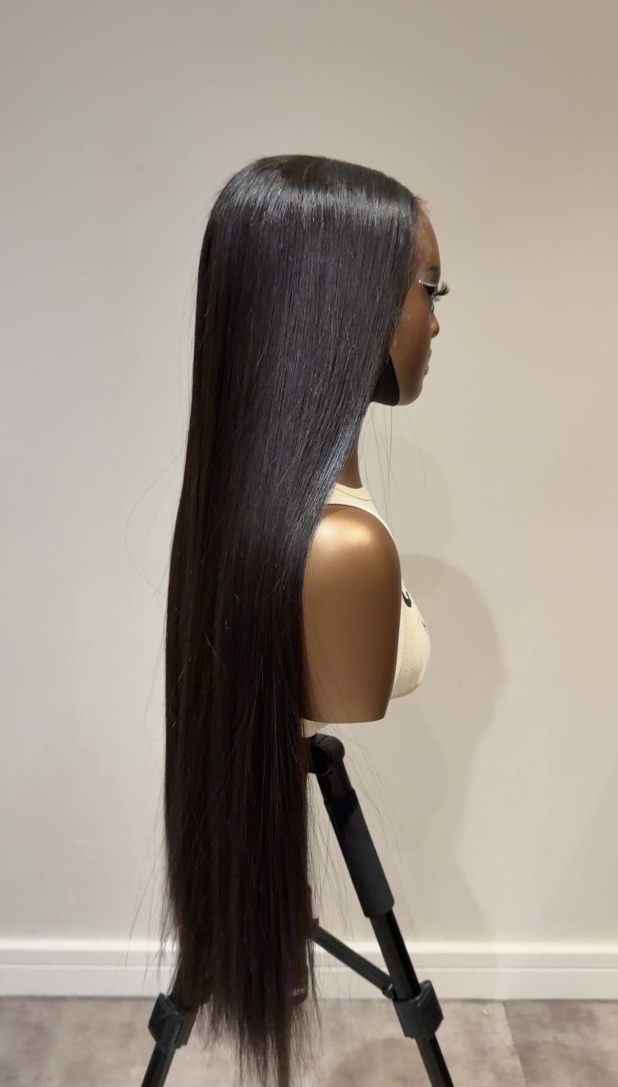26”inch  luxury straight wig featuring an ultra-thin HD frontal lace for a flawless, natural hairline. Silky, bone-straight finish with beautiful shine and full density from root to tip for an effortlessly glamorous look.